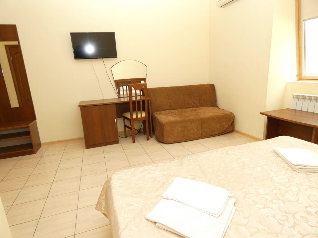 Однокомнатный номер: с двуспальной кроватью или двумя раздельными односпальными кроватями, диваном.